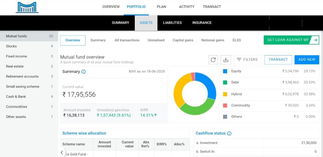 You can easily track over 25 asset classes including mutual funds, equities, fixed income, insurance and more, with daily updates on net worth and cash flow, when you include your investments on our platform.